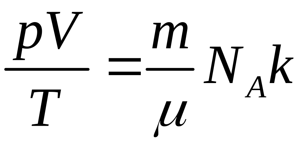 Для данной массы газа N = const, поэтому правая часть уравнения (2) будет тоже постоянная величина для данной массы газа. Тогда из (2) следует, что для данной любой массы газа будет выполняться соотношение