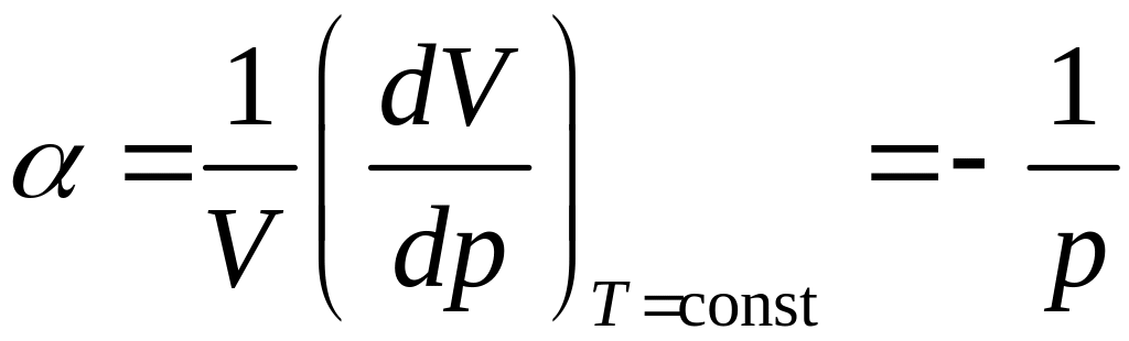 Изотермический коэффициент сжимаемости идеального газа равен обратной величине его давления. Знак минус указывает на то, что увеличение объема приводит к уменьшению давления и наоборот.