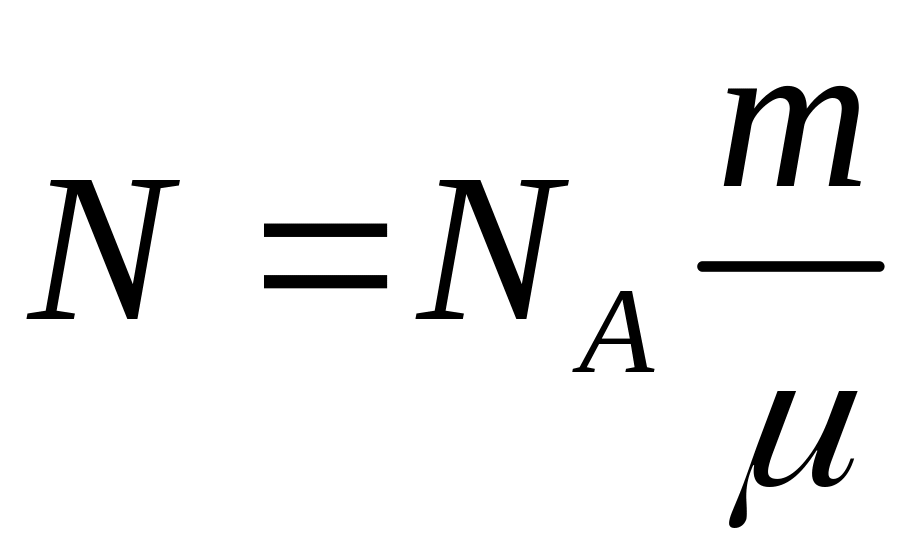 где N – число молекул в массе газа m, μ – молярная масса, NА - число Авогадро.