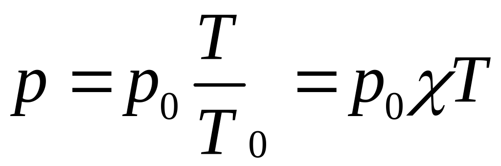 где p0 – давление газа при T = T0 = 273,15 К (т. е. при температуре 0 °С). Коэффициент χ, равный (1/273,15) К–1, называют температурным (термическим) коэффициентом давления.