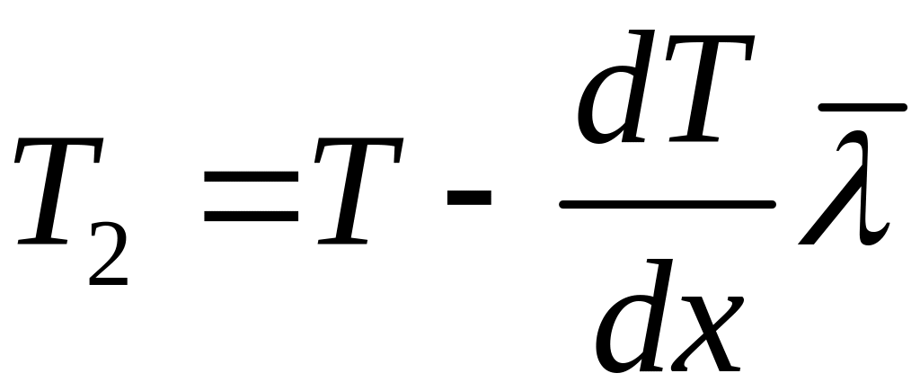 Поэтому возникает поток теплоты, равный разности энергий переносимых молекулами слева и справа. Последние столкновения перед площадкой dS слева и справа, будут происходить на расстояниях , где температура слоев газа равна соответственно: