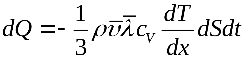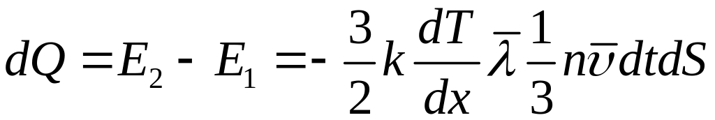 С учетом этого количество теплоты (энергия), которая переносится молекулами через площадку dS, будет равна разности кинетических энергий молекул проходящих через площадку.