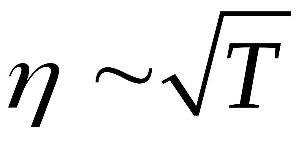 На самом деле η растет несколько быстрее чем , потому что с ростом температуры не только увеличивается скорость молекулы, но и уменьшается эффективный диаметр молекул (формула Сезерленда), что приводит к увеличению .