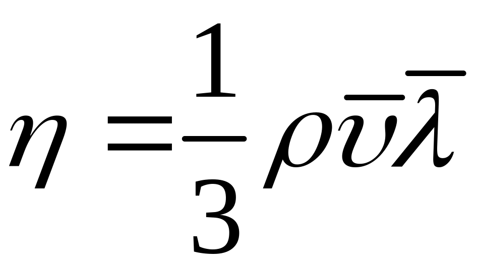Известно, что ρ ~ p, а ~ 1/p. Следовательно, из (7) вытекает, что η не зависит от давления газа. Этот факт объясняется следующим образом. С уменьшением давления уменьшается концентрация молекул, а значит и их число, участвующее в переносе. Однако при этом увеличивается. Поэтому импульс, который переносит одна молекула, так же увеличивается. В результате суммарный импульс, переносимый молекулами при данном градиенте скорости не изменяется.
