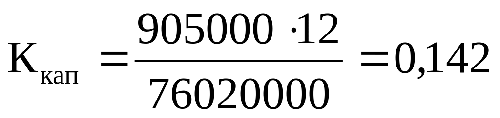 Ккап ср = (0,142 + 0,118 + 0,216 + 0,162 + 0,100) / 5 = 0,1476.