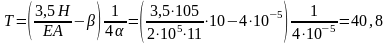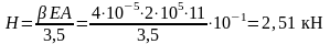 3. Установим, на сколько градусов надо охладить стержень, чтобы реакция основания при заданном значении H обратилась в нуль. Для этого удлинение стержня от сил H приравняем сумме зазора и изменения длины стержня от температуры: