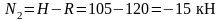 2. Найдём реакцию основания при заданном значении H. Для этого удлинение стержня от силH приравняем сумме зазора и изменения длины стержня от реакции основания: