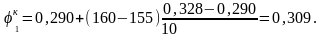 Для найденной гибкости определяем соответствующий коэффициент продольного изгиба, используя линейную интерполяцию табличных данных:
