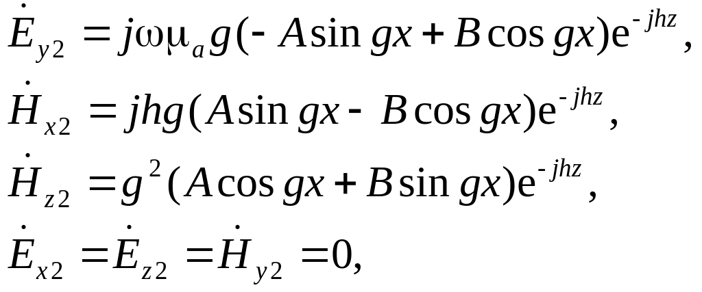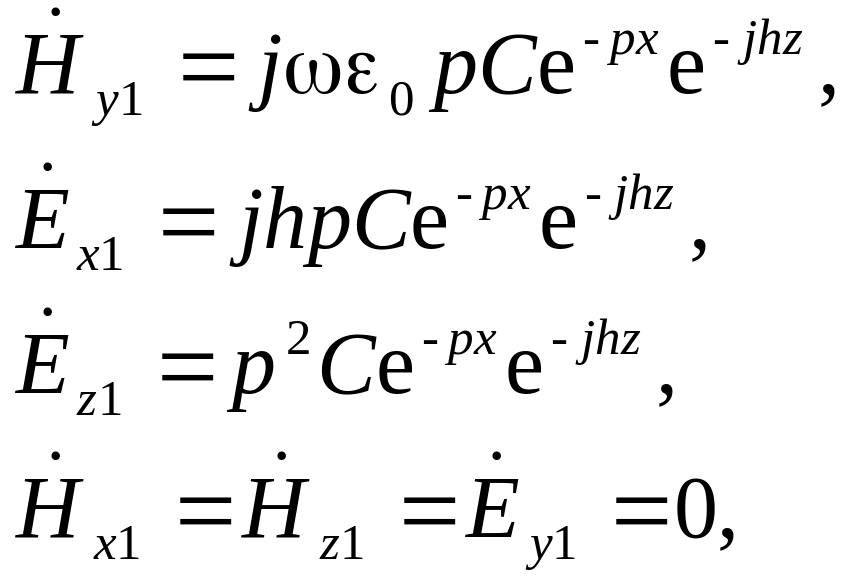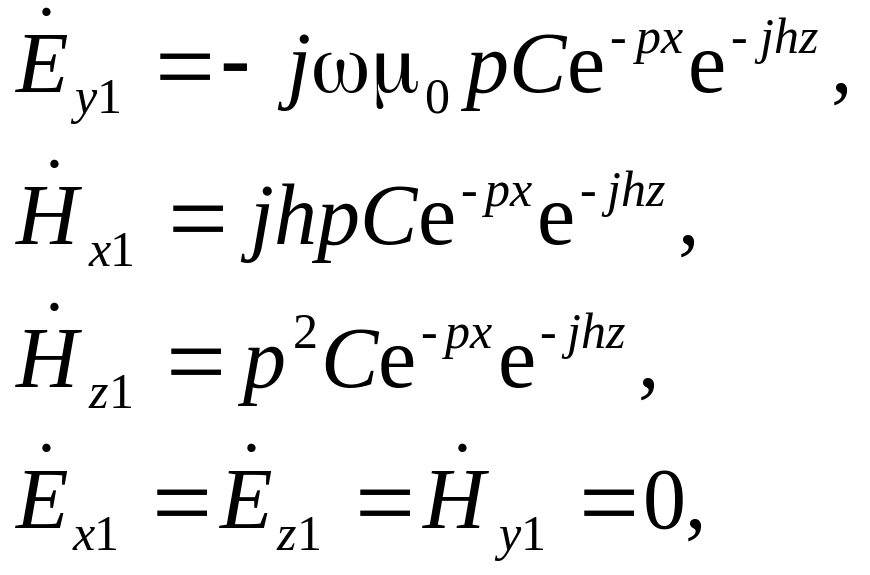Поле хвилі типу Ε описується рівнянням Гельмгольца. Для складових векторів поля справджуються наступні рівності:
