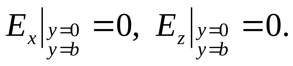 На границях розподілу повітря і діелектрика x = а і x = -а тангенціальні складові поля повинні задовольняти граничним умовам: