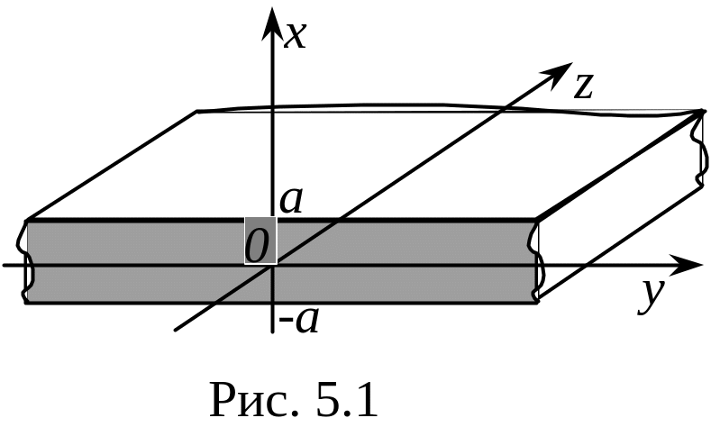 Η-подібна метал-діелектрична лінія передачі (див. рис.5.4) являє собою діелектричну пластину, обмежену з двох сторін металевими площинами. Тут поле повинне задовольняти граничним умовам на поверхні металевих пластин: