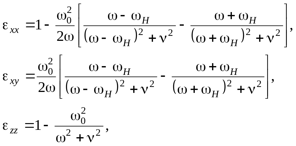 Залежність від частоти компонент xx та yy тензорів гіротропних середовищ має резонансний характер. Резонансна частота пропорційна напруженості магнітного поля H0, а ширина резонансної кривої визначається параметром ν.