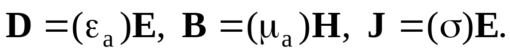 Особливості розповсюдження електромагнітних хвиль у певному середовищі визначаються властивостями даного середовища. У електродинаміці для локального опису властивостей середовища використовують матеріальні рівняння