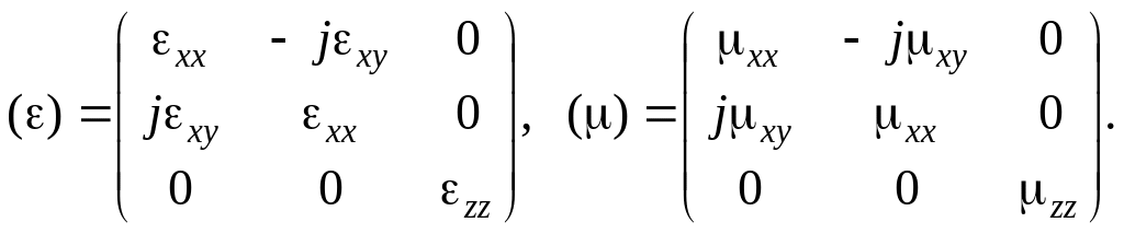Прикладом гіромагнітного середовища з тензором () є ферит, розміщений у постійному магнітному полі H0. Складові тензора комплексної магнітної проникності фериту при записуються наступним чином: