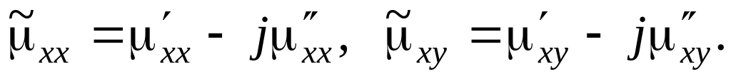 Складові тензора комплексної магнітної проникності, що описуються виразами ( 9 .0), у загальному випадку містять дійсну та уявну частини: