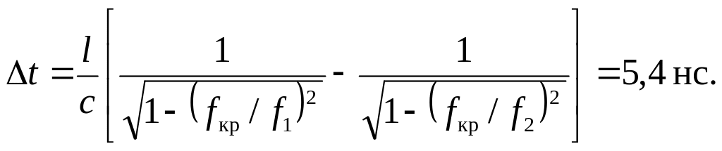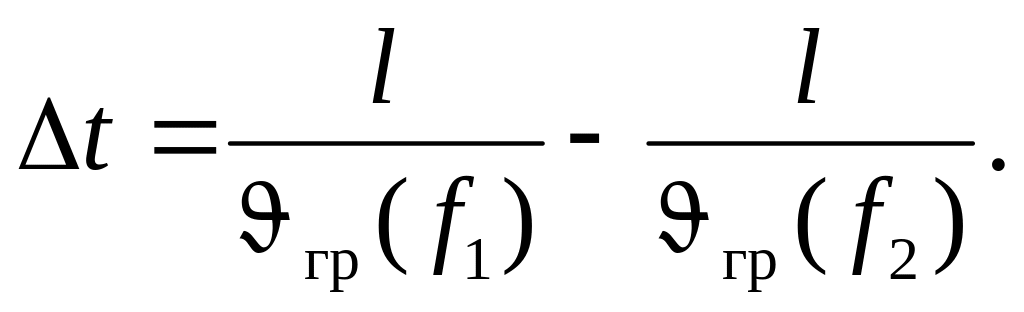Припустимо, що ширина спектра дорівнює ширині його, головного пелюстка. Тоді крайні частоти спектра будуть рівні: f1 = f0 - 1/ = 9,833 ГГц, f1 = f0 + 1/τ = 10,167 ГГц. Різниця групового часу запізнення