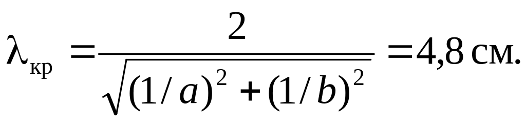 Роз’язок. Знайдемо критичну довжину хвилі для коливання типу Н11 у прямокутному хвилеводі:
