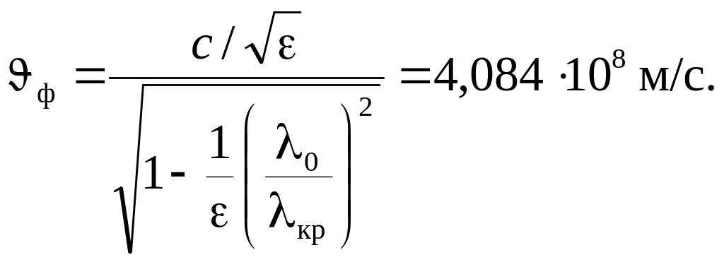 Визначити фазову швидкість і довжину хвилі у хвилеводі.