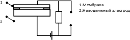 Конденсаторный микрофон работает следующим образом: жестко натянутая мембрана 1 под воздействием звукового давления может колебаться относительно неподвижного электрода 2, являясь вместе с ним обкладками электрического конденсатора. При колебаниях мембраны емкость конденсатора меняется с частотой воздействующего на мембрану звукового давления, следовательно, в электрической цепи появляется переменный ток той же частоты и на нагрузочном сопротивлении возникает падение напряжения, являющееся выходным сигналом микрофона. Конденсаторные микрофоны имеют самые высокие качественные показатели: широкий частотный диапазон, малую неравномерность частотной характеристики, низкие нелинейные и переходные искажения, высокую чувствительность и низкий уровень шумов. Могут использоваться в пассивных акустических СО. Схема пьезоэлектрического микрофона представлена на рисунке 6.