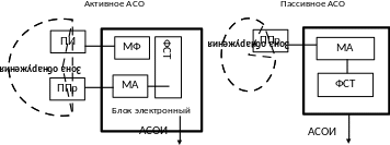 Типовая функциональная схема акустического СО (АСО) (рисунок1) включает: преобразователь излучающий (ПИ), преобразователь приемный (ППр), модуль формирующий (МФ), модуль анализирующий (МА), формирователь сигнала тревоги (ФСТ).