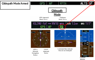 Режим Glidepass используется для захода ВС на посадку по глиссаде снижения, сформированной на основе информации WAAS. Когда режим Glidepass Mode задействован, сигнализатор белого цвета «GP» отображается в Navigation Status Box.