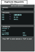 Если введенный идентификатор точки в Waypoint Information Window имеет дублированные точки, откроется окно Duplicate Information Window.