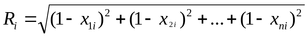 В основе расчета итогового показателя лежит сравнение с «эталоном» (самым удачливым конкурентом, у которого все показатели лучше).