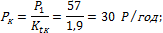 Pк - рівень радіації наприкінці перебування в зоні РЗ, Р/год.