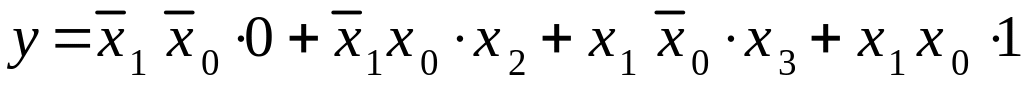 Определить две переменные, наиболее часто встречающиеся в различных простых импликантах. В нашем случае это переменные х1 и х0, так как они встречаются по два раза, а переменные х3 и х2 только один раз. Именно переменные х1 и х0 необходимо подать на соответствующие адресные входы a1 и a0 MS 4 1.