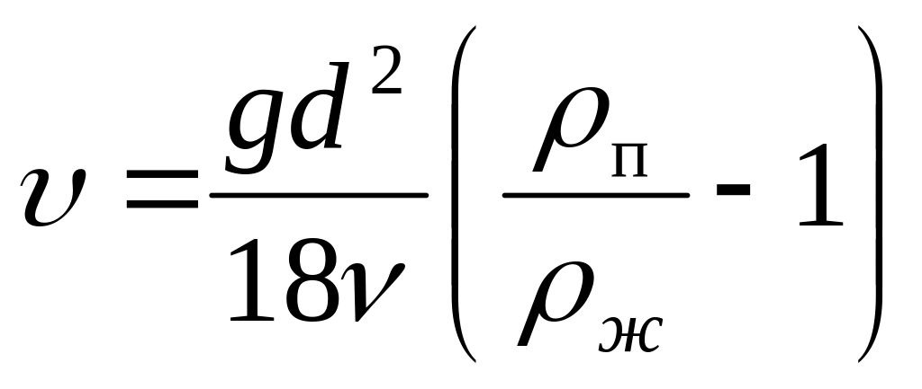 где d — диаметр частиц в м; — скорость осаждения частиц в м/сек; ж — плотность жидкости в кг /м3; п — плотность вещества частицы в кг/м3; g — ускорение силы тяжести в м/сек2; — кинематическая вязкость в м2/сек.