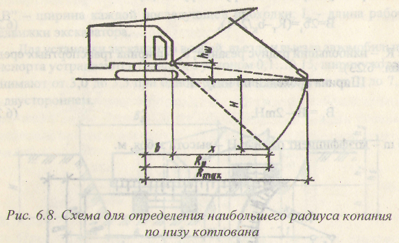 где Н - глубина котлована, м; Ьщ - высота до оси пяты стрелы, м; b -расстояние от оси пяты стрелы до оси вращения экскаватора, м.