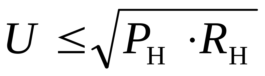 Рабочее напряжение резистора (u) не должно превышать значения, рассчитанного из номинальной мощности (ph) и номинального значения (rh)