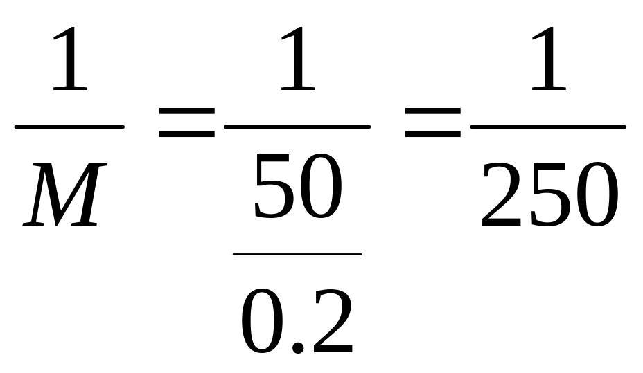Пусть выполняется графическое проектирование. Наименьший отрезок, который может быть снят с плана, составляет величину ℓ. Если принять, что точность проектирования на местности составляет величину ∆ℓ, то масштаб плана можно вычислить так