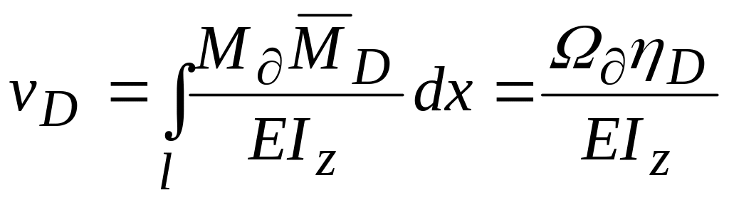Розглянемо визначення розрахункових значень прогину перерізу D і кута повороту перерізу А. Застосуємо метод сил згідно до приведеної вище схеми.