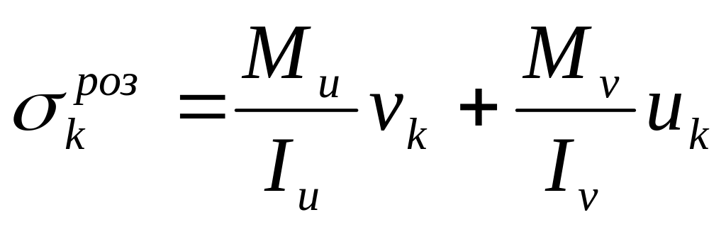 За формулою (9.3) обчисліть розрахункові значення напруження у точці К перерізу D.