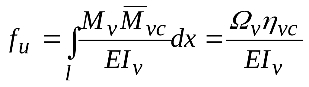 Розрахункові значення прогинів перерізу С балки в напрямі головних осей и і v мажна визначити за методом Мора, перемножуючи відповідні епюри по правилу Верещагіна: