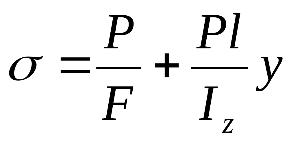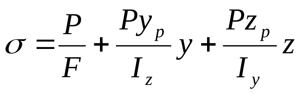 Нормальні напруження у цьому випадку розподілені по поперечному перерізу стрижня нерівномірно – вони змінюються за законом площини, нахиленої до поперечного перерізу:
