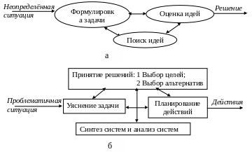Рисунок Укрупнённая модель процесса, обеспечивающего решение творческой задачи: а - схема решения творческих задач Дьюи; б- укрупнённая модель процесса выбора систем