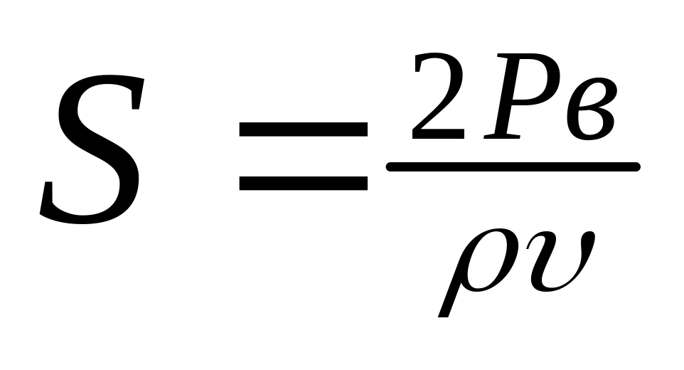 Используя значения мощности ветра, рассчитываем площадь по формуле: