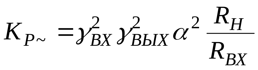 Коэффициент усиления по напряжению ( ) равен отношению выходного напряжения (напряжения на нагрузке) к входному напряжению (напряжению источника сигнала).