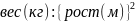 Индекс Брока – нормальный вес(кг)= рост(см)-100.