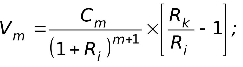 Cm – розмір інвестицій (втрачених доходів) у період m;