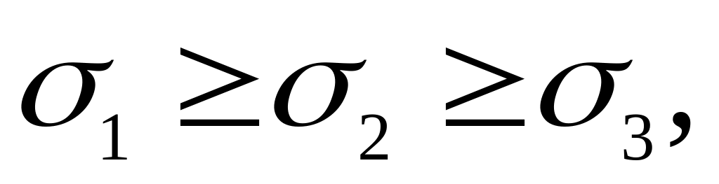 Наклонная площадка может иметь такую ориентацию, что в ней будут действовать только нормальные или только касательные напряжения. Площадки, на которых отсутствуют касательные напряжения, называют главными площадками, а действующие на них напряжения – главными. Доказано, что через каждую точку тела можно провести единственные три взаимно перпендикулярные главные площадки, в каждой из которых действует одно главное напряжение. Между главными напряжениями установлено соотношение