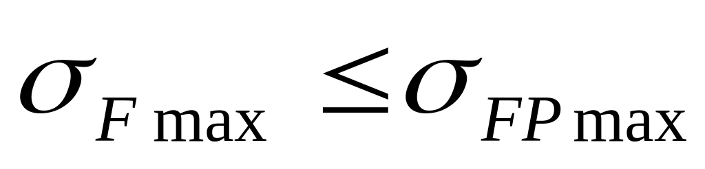 т. е. сопоставляя расчетное и допустимое напряжения изгиба в опасном сечении при максимальной нагрузке. Расчетное напряжение изгиба в опасном сечении