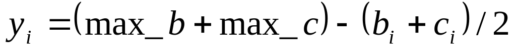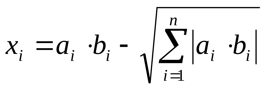 Даны три числовые последовательности a, b и с. Сформировать две новые последовательности х и у. Формирование выполняется в два этапа. На первом этапе осуществляется нормировка исходных последовательностей a, b и с. В результате нормировки получаются последовательности , и . Затем формируются последовательности х и у.