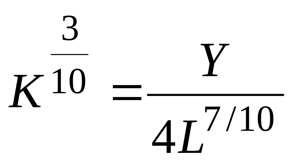 2. Найдем уравнения изоквант, то есть зависимость K(L), предполагая, что Y=const: