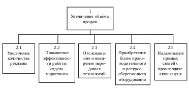 При формировании «дерева целей» можно пользоваться разными подходами и методиками [1]. Например, генеральная цель может конкретизировать миссию организации, а может формулироваться «от проблем», может основываться на «концепции деятельности» и т.д.