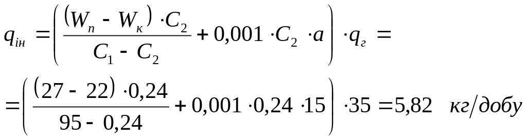 С1, С2 – масова концентрація свіжого (регенерованого) і відпрацьованого (насиченого вологою) інгібітора, %;