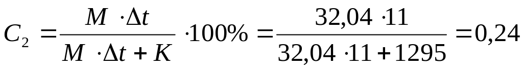 Концентрацію введеного в потік метилового спирту приймаємо рівною С1 = 95 %.