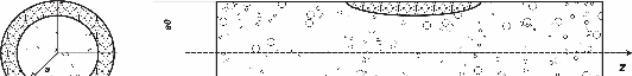 Рис.1. Схема газопроводу, на внутрішніх стінках якого утворюється шар газогідрата: поперечний і подовжній перетин